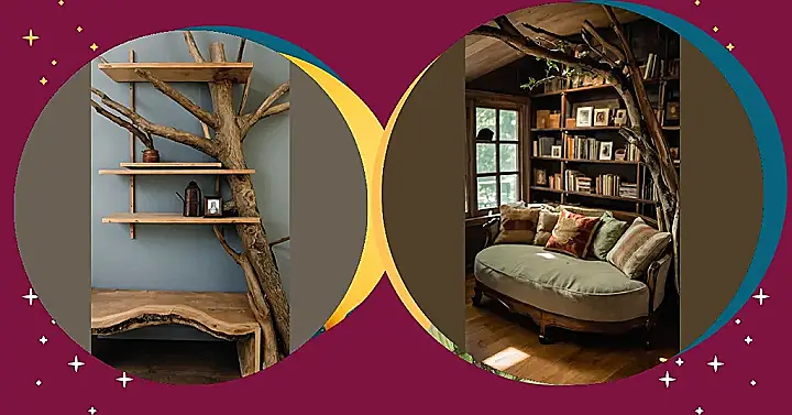 This isn’t your grandma’s bookshelf! Check out this awesome tree branch shelf – it’s like bringing a little bit of the outdoors inside. Imagine all the cool books, plants, or even quirky knick-knacks you could display on its unique branches. It’s way more interesting than those boring, old square shelves, right? It’s practically a piece of art that also holds your stuff!