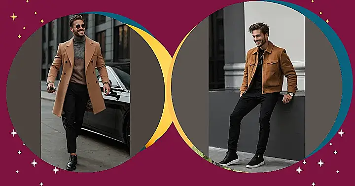 This guy’s outfit is definitely fall-ready! He’s rocking a stylish camel coat that looks super cozy, perfect for those chilly autumn days. And check out those slick black shoes! They’re giving off serious James Bond vibes, like he’s about to save the world from a supervillain.