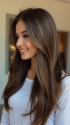 Want hair that looks like you just stepped out of a shampoo commercial (but without the awkward slow-motion hair flips)? This long hairstyle is totally achievable, and it’s all about those face-framing layers. They’re like a personal spotlight for your gorgeous face, making you look effortlessly cool and ready to ace that pop quiz, impress your crush, or just conquer the world one strand at a time.