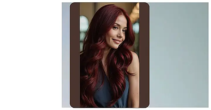 Wow, check out that gorgeous mane! It’s like a fiery sunset, but instead of warming the sky, it’s warming our hearts (and maybe a little jealous of its amazing shine!). That wine red, long, layered hair is seriously goals – it’s the kind of hair that makes you want to run your fingers through it (don’t actually do that unless you know the owner, though!). Seriously, whoever styled this masterpiece deserves a major award. It’s the perfect blend of sophisticated and playful, a little bit mysterious and a whole lot fabulous.