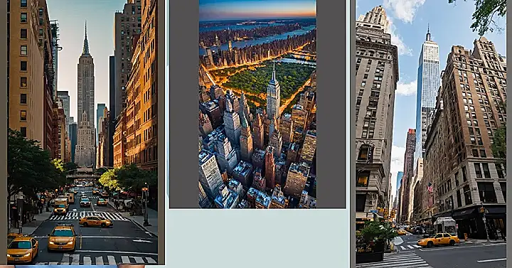 Look at this classic New York City scene all warmed up for summer! The Empire State Building is standing tall in the distance, probably wishing it could wear shorts. Down below, the streets are packed with those iconic yellow cabs buzzing around like giant, noisy bumblebees, trying to beat the heat and maybe score the next fare before the light changes. It feels like the whole city is just radiating warmth, making the tall buildings feel even taller as they try to offer a tiny bit of shade.