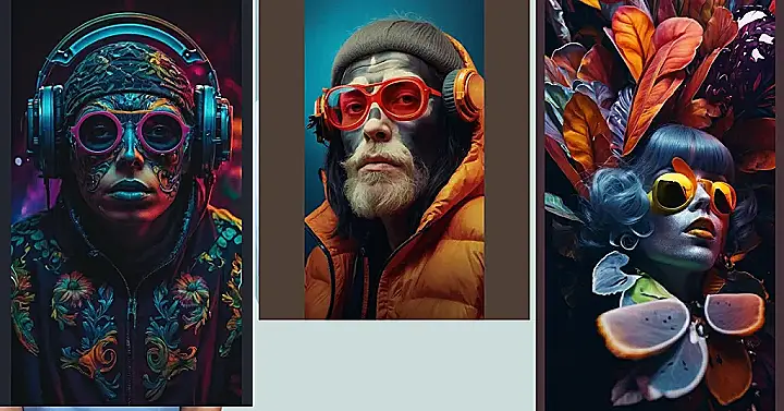 Seriously, this picture is perfect for anyone who loves bright colours and weird, fun designs. The art style is modern and funky, reminding me of a futuristic cartoon. That cool, almost cyberpunk vibe, mixed with the artistic makeup is a fantastic blend. You could zoom in on any part of this picture – the glasses, the colorful bits on the headband, even the model’s fierce expression – and it would still be a ridiculously awesome wallpaper!