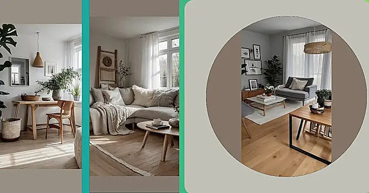 The image shows a Scandinavian home decor style that’s all about simple elegance and natural elements. It’s like stepping into a peaceful oasis, with light wood furniture that’s smooth as silk and a giant woven basket that’s begging you to throw all your worries inside! The picture makes you want to curl up with a good book and a steaming cup of tea, maybe even a little bit of cinnamon for an extra dose of hygge!