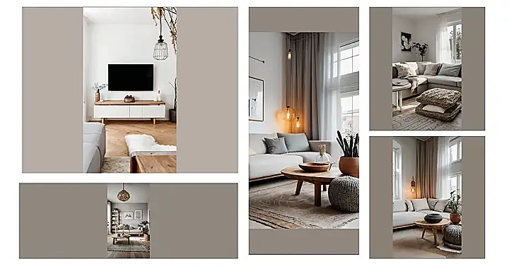 The image shows a Scandinavian home decor style that’s all about simple elegance and natural elements. It’s like stepping into a peaceful oasis, with light wood furniture that’s smooth as silk and a giant woven basket that’s begging you to throw all your worries inside! The picture makes you want to curl up with a good book and a steaming cup of tea, maybe even a little bit of cinnamon for an extra dose of hygge!