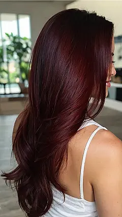Check out this gorgeous hair! It’s like a delicious glass of wine – rich, deep, and totally mesmerizing. That wine red color is seriously stunning, and the long layers give it such a cool, flowing movement. It’s the kind of hair that makes you want to run your fingers through it (but maybe ask first!). Imagine walking down the hallway with this head-turning mane – you’d be the envy of everyone, especially if you paired it with a super stylish outfit.