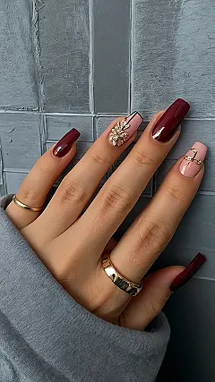 Seriously, whoever did these nails deserves a huge holiday bonus. The attention to detail is amazing! From the perfect burgundy to the delicate gold bow, it’s clear that a lot of love (and glitter!) went into creating this masterpiece. They’re practically begging to be photographed, especially next to all your presents. You could even match your nails to your Christmas outfit for extra holiday sparkle!