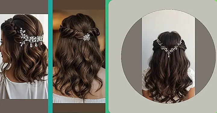 Prom is coming, and you might think having short hair means boring styles. Think again! You can totally rock a cool look, even if your hair isn’t long enough to braid down to your knees. Just look at this picture: it’s a super cute half-up style with waves, perfect for showing off your dress and still looking effortlessly chic. Who needs a super long braid when you can make a statement with texture and a touch of glam?