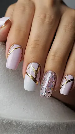 Seriously, these nails are way better than any snow day you’ll ever have! Forget shoveling – just look at those chic gold accents. They’re so elegant and sophisticated, yet so easy to wear. It’s like they took all the best parts of winter—the soft colors, the subtle shimmer—and put them on your nails. Plus, they’re way less chilly than actually being outside in the snow. Who needs a snowball fight when you can have this stunning manicure instead?