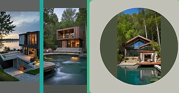 Imagine waking up in this riverside house every morning! It’s like living in a giant, stylish treehouse but way cooler. All those windows mean you can watch the river go by and spot wildlife without even getting out of bed. Plus, imagine having a party here! You could totally impress your friends with your awesome pad and that fire pit right by the water.