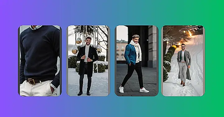 This Christmas, ditch the reindeer sweater and embrace a look that’s both festive and stylish. This outfit shows that you can be comfortable and cool without looking like you raided your grandpa’s closet! Imagine strolling through a winter wonderland, not in bulky layers, but in a sophisticated yet relaxed ensemble. That’s what this sweater and pants combo brings to the table – a classy, modern twist on holiday dressing for the fashionable guy. Think less “Christmas elf,” more “Christmas celeb.”