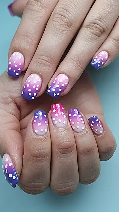 These nails are like a super-chill winter sunset – all pretty purples and pinks with adorable white polka dots! Imagine snuggling up by a fireplace with a hot chocolate, and your nails are just as cozy and stylish as you are. They’re so easy to do, even your grandma could probably manage it (with a little help, maybe!). Forget those fussy, complicated designs; these are the perfect blend of simple and stunning – the kind of nails that go with everything from your favorite sweater to your winter boots.