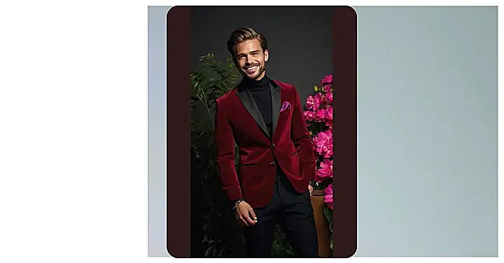 Forget reindeer and mistletoe, this Christmas party outfit is all about making a seriously stylish entrance! That velvety burgundy jacket is like a hug for your shoulders, and those sleek pants? They’re ready to hit the dance floor. Imagine yourself, looking like a million bucks, totally owning the holiday party. No awkward small talk, just confident smiles and maybe even a slow dance or two. This outfit’s got “festive fabulous” written all over it, guaranteed to make you the best-dressed dude at the Christmas gathering.