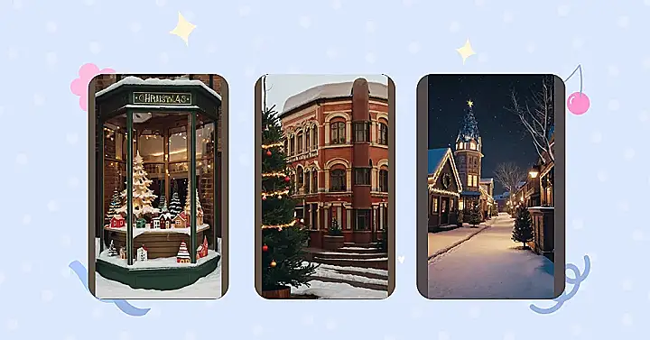 **Paragraph 1:** Wow, check out this picture! It’s like stepping into a real-life Christmas postcard. Imagine strolling down a snowy street, all cozy and twinkling with lights. Every little house looks like it belongs in a gingerbread village, especially that tower with the giant star on top – it’s practically begging Santa to land his sleigh there! The whole scene screams “Christmas town aesthetic,” right? It’s so cute, you almost expect to see tiny elves scurrying around delivering presents. I bet hot cocoa and gingerbread cookies would taste extra delicious here!