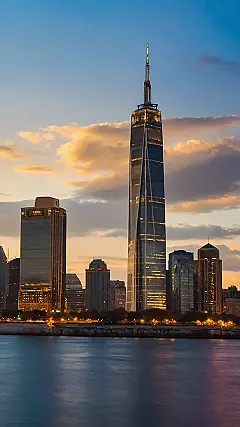 This photo is like a postcard from a super fancy place where buildings touch the sky! Whoever took this shot really knows their stuff, capturing that golden light as it bounces off the skyscrapers. It’s almost like the sun is giving the city a big, warm hug. You could totally see this hanging in an art gallery, or maybe even as the background on someone’s phone who really loves architecture.
