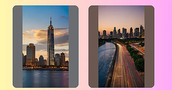 This photo totally nails the “beautiful cities” vibe. Look at all those glowing skyscrapers, standing tall like they’re posing for their senior yearbook photo! And the river next to the busy road? It’s like the city’s chill friend, just hanging out and keeping things balanced. You can almost hear the honking and the excited chatter of people living their best city lives.