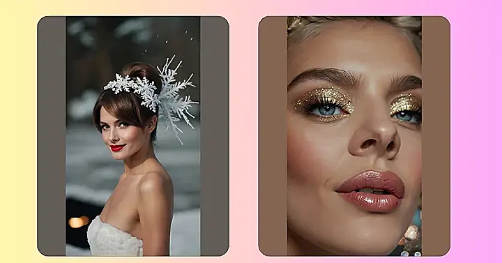 This makeup look is seriously festive! Imagine rocking this shimmery gold eyeshadow at your Christmas party – you’ll be the belle of the ball, outshining even the Christmas tree lights. That gorgeous red lipstick adds a pop of color that’s perfect for the season, making you look like a Christmas candy cane come to life! It’s so sparkly and glamorous; you might even get mistaken for a Christmas ornament!