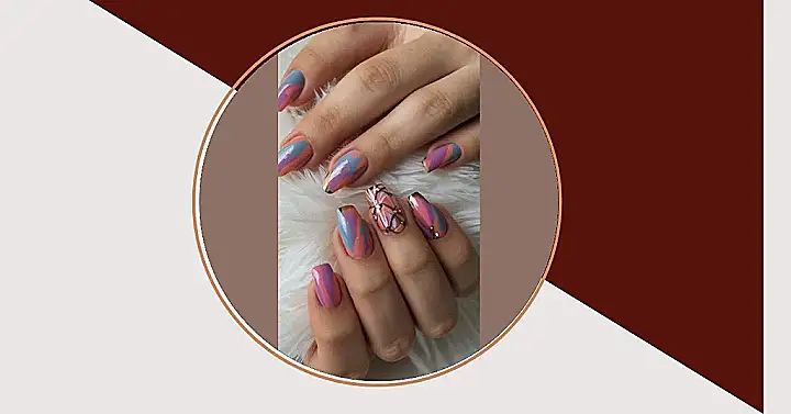 These nails are so cool, they’re like if Lisa Frank and a fancy art museum had a baby! Seriously, those swirly colours look like a modern art masterpiece, and that one nail with the gold criss-cross design? Total boss-mom vibes! I bet this mom can juggle school drop-offs, grocery shopping, and a board meeting all while rocking these amazing nails.