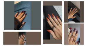 Check out the rings, too! They’re like a tiny forest growing on your hand, all sparkly and magical. One wrong move and you might accidentally summon a fairy queen (or just snag your sweater, but let’s focus on the fairy queen part). Paired with the dark burgundy tips, it’s a whole vibe. It’s giving “powerful witch who also loves a good manicure” and honestly, who wouldn’t want that look?