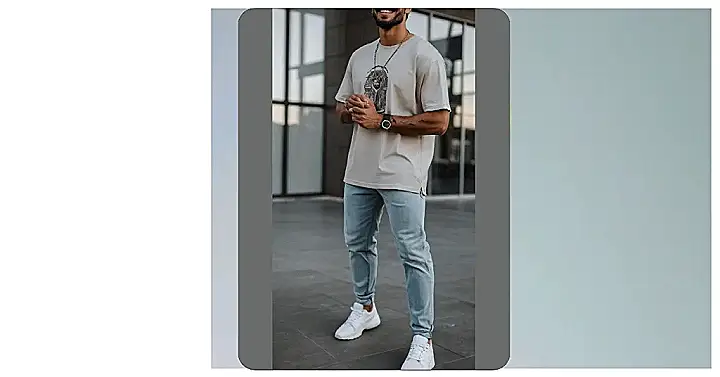 This guy’s got the perfect outfit for a relaxed day out. A simple, light-colored t-shirt is the key – and it doesn’t even have to be plain! He’s rocking a cool design that makes his outfit stand out. It’s like, “Hey, I’m comfy, but I still look good.” And those jeans? Super casual but still flattering. He’s totally nailed the comfy-cool vibe!
