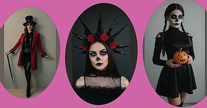 This costume is perfect for those who love a dramatic and slightly spooky look. It’s easy to pull off, even if you’re scrambling at the last minute. Just grab some black lace and a crown (or headband), and get creative with your makeup! This look is all about channeling your inner queen, with a dash of spooky charm.