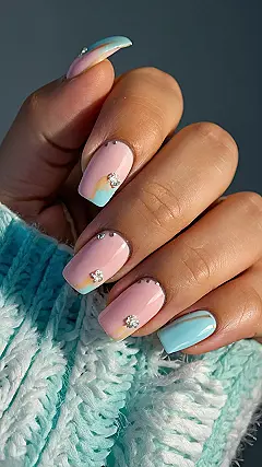 Now, if you’re like me and have the artistic skills of a potato, don’t worry! You can totally DIY this look with some press-ons. Just grab a few pastel shades, some sparkly gems from the craft store, and boom! You’re ready to be the trendsetter in your friend group. Just don’t try painting them while riding the bus – trust me, it doesn’t end well.