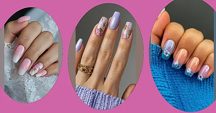 This nail look is giving major spring vibes, especially with that soft lavender color. It’s the kind of nail art that makes you want to wear flowy dresses and go frolicking in a field of wildflowers (or at least take some cute selfies for the gram!). The best part is, these designs are simple enough that you might even be able to DIY them with some practice. Get ready to blossom into spring with these nails!