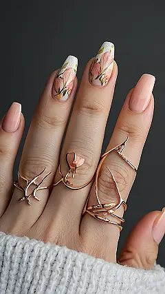 Speaking of fairy princesses, check out those rings! They’re not your grandma’s jewelry, that’s for sure. They look like something straight out of a fantasy movie, all swirly and twig-like. Picture yourself at prom with these nails and rings – you’ll be the queen of the forest, but like, a really stylish queen, ready to rule the dance floor!