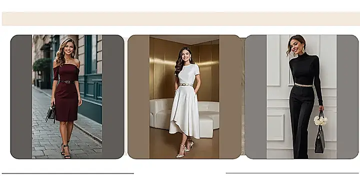 Picking out the perfect spring dinner outfit is basically like choosing your superpower for the night. Do you go bold and bright, or classic and cool like the maroon dress here? Adding a belt can make you feel instantly put-together, even if you spent ten minutes before leaving trying to find matching socks. And those heels? They look fancy, but hopefully, they’re comfy enough to walk to the car without tripping. Remember, the best accessory is a big smile and maybe a friend to share appetizers with, because everything tastes better when you don’t have to pay for it yourself.