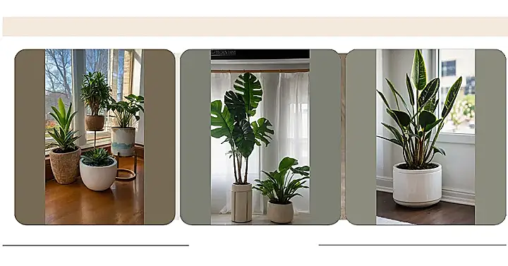 These plants are seriously stylish! Check out how much personality these simple plant stands add to these already awesome indoor plants. It’s like giving your green friends a little wooden throne, which just elevates their whole vibe. Imagine having your leafy buddies looking this good—it’s the ultimate indoor jungle upgrade, even if your jungle only has three members.