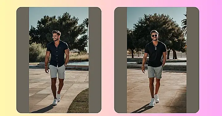 This guy’s outfit is seriously chill. He’s rocking a navy polo shirt – perfect for keeping things simple and looking sharp. Those light grey shorts are the perfect complement, proving that comfort and style aren’t enemies! Add a pair of clean white sneakers and some cool shades, and boom – you’ve got the ultimate in effortless casual style. It’s the kind of look that works whether you’re hanging out with friends, going to the mall, or just cruising around town. He’s basically saying “I look good, and I know it,” but in a super friendly, not-at-all-show-offy way.