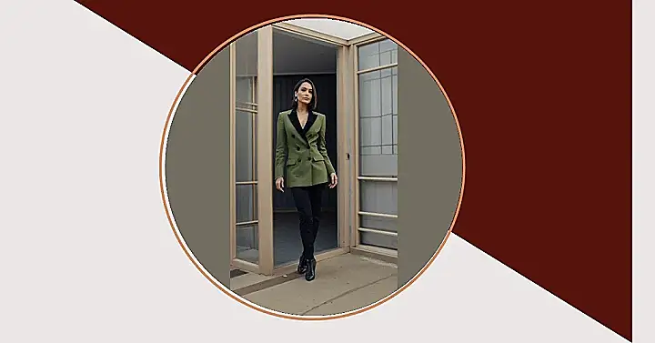 This outfit is like a secret decoder ring for looking effortlessly cool! You’ve got the classic blazer, but instead of your typical boring black, it’s a fresh, vibrant green that screams “I’m not afraid to stand out.” The black collar adds a touch of elegance, like you’re wearing a fancy tuxedo, but without the stuffy vibe. And those sleek black pants? They’re like the secret weapon of every stylish girl – they make your legs look extra long and make everything else in your outfit pop.