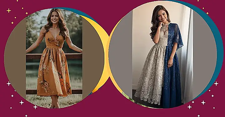 Check out this dress! It’s like it went to a fancy dress party and decided it wanted to be two different awesome colours at once. Half “ready for a chill tea party” grey lace, half “diving into the deep end of fabulous” blue. You’d need a serious occasion for something this cool, maybe a school dance where you want to look totally unique, or just when you feel like being extra dramatic walking to the fridge for a snack. It’s definitely a statement piece that says, “Yeah, I couldn’t pick just one!”