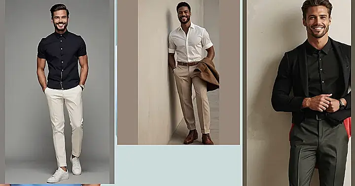 This guy’s rocking a classic men’s clothing style that’s super easy to copy. It’s like a blank canvas for your personal style – you can add your own flair with accessories or just keep it simple. The key is a good fit, which he totally nailed. Think about it: a crisp button-down shirt (but make it short sleeves for those hot summer days!), some clean white pants, and stylish white sneakers. It’s all about simplicity, and that’s totally cool!