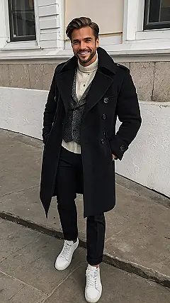 **Paragraph 1:** Forget freezing your buns off this winter! This guy’s rocking the ultimate streetwear look that’s both stylish and super cozy. Check out that awesome long coat – perfect for battling those icy winds. He’s paired it with a chunky knit sweater (major comfort points!), dark jeans, and crisp white sneakers. It’s like a comfy hug wrapped in a fashion statement. The whole outfit screams “I’m ready for snow days and hot chocolate,” but in a seriously cool way.