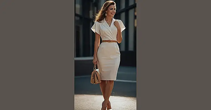 Putting on something like this isn’t just wearing clothes; it’s like putting on a superpower. You stand up a little straighter, maybe even feel brave enough to ask for extra toppings on your pizza without blinking. This kind of classy look, like the one in the picture with the chic little bag and perfect shoes, makes you feel ready for anything, whether it’s a big presentation or just showing up looking fabulous. It proves that ‘classy women outfits’ are really just confidence boosters disguised as awesome dresses and accessories.