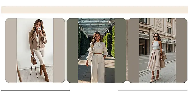 This outfit is like a breath of fresh air—totally stylish but still comfy enough to wear all day. Imagine strolling down the street, feeling like a million bucks in this cute beige skirt and crisp white top. It’s the perfect blend of dressy and casual – you could rock it at a coffee date with friends, a family gathering, or even a casual outing. No need for complicated outfits!