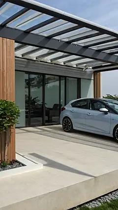 This car porch isn’t just a place to park your wheels; it’s a statement! Imagine pulling up in your ride, and BAM! – you’re greeted by this sleek, modern design. It’s like having a mini-palace for your car, all glass and sunshine, keeping your sweet chariot safe from the elements. Seriously, it’s cooler than your average garage; this is the ultimate “look at my awesome car porch” flex.