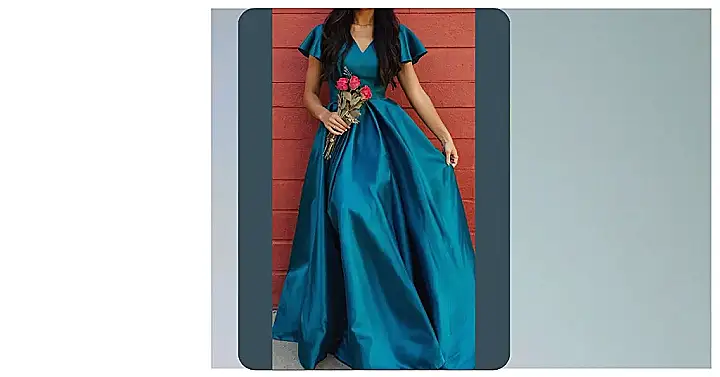 This long frock is so pretty, you could probably float to the prom! It’s like something straight out of a fairytale, perfect for making a grand entrance (or just feeling like a queen while grabbing a burger with friends). And that teal color is super dreamy – imagine how it would shimmer under the dance floor lights!