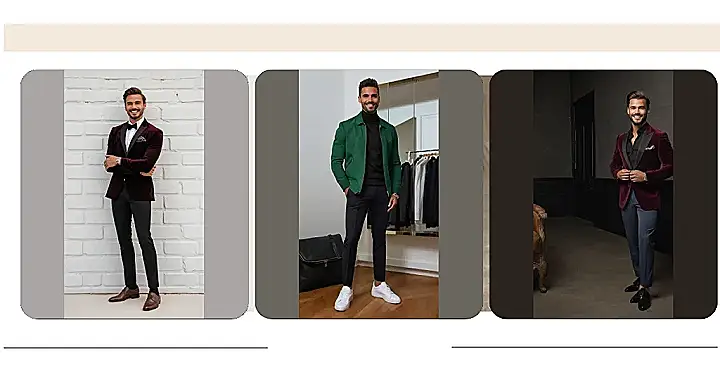 Forget reindeer and mistletoe, this Christmas party outfit is all about making a seriously stylish entrance! That velvety burgundy jacket is like a hug for your shoulders, and those sleek pants? They’re ready to hit the dance floor. Imagine yourself, looking like a million bucks, totally owning the holiday party. No awkward small talk, just confident smiles and maybe even a slow dance or two. This outfit’s got “festive fabulous” written all over it, guaranteed to make you the best-dressed dude at the Christmas gathering.