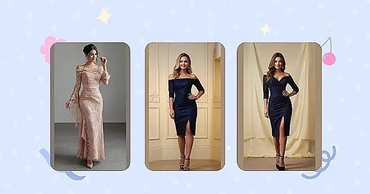 This dress is seriously screaming “spring dinner, but make it fancy!” Imagine showing up in this blush-toned beauty, ready to charm everyone with your totally classy vibe. It’s got that off-the-shoulder thing going on, which is super stylish, and the delicate lace pattern makes it look like you’re wearing a field of flowers. You could totally rock this at a fancy restaurant or even a sophisticated garden party.