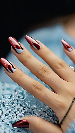 These nails are seriously chic! Imagine strolling through a winter wonderland, but instead of snowflakes, you’re leaving a trail of dazzling red and white nail art. It’s like a sophisticated holiday party on your fingertips – all glam and no awkward small talk. These burgundy and white swirls are totally giving off “ice queen” vibes, but in the best way possible. They’re the perfect blend of festive and fierce, and would totally up your selfie game.