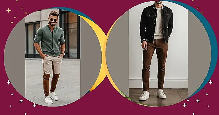So, you’re trying to nail that “gents casual outfit” vibe, huh? Well, check out this dude! He’s rocking the “I’m not trying too hard, but I still look awesome” look. It’s like he just threw on a comfy shirt, a cool brown jacket that looks straight out of a movie, and some sneakers. The white sneakers look like they have never been used and are so bright, but it works. You could totally see him chilling at the park, or even grabbing a fancy coffee with your friends.