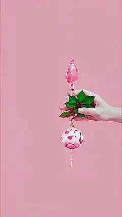 This image is like a Christmas ornament party in a pink dreamland! A hand is holding a glitzy pink bauble, and it’s so sparkly, it’s like a disco ball for a tiny Christmas tree. But wait, what’s that hanging below? It’s another pink bauble, this one with a cool swirl pattern. It’s like the bauble is holding on for dear life, and the hand is about to release it for a festive freefall!