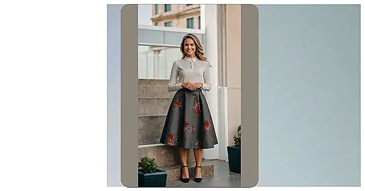 Plus, check out that skirt! It’s flowy and comfy but still looks super fancy. It’s like wearing pajamas, but nobody has to know. And did you see the pockets? Pockets in a skirt are a total game-changer. You can stash your phone, snacks, or even a tiny unicorn in there. This skirt and top combo is proof that you can be comfy and stylish at the same time, which is basically the dream, right?