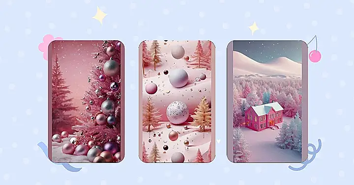 This image is like a winter wonderland for your phone! Imagine waking up every morning to see these gorgeous pink trees, with snowflakes falling all around. It’s like a little bit of magic, right on your screen. Who knew Christmas could be so pretty in pink? This wallpaper is sure to be a conversation starter, and it’s definitely the perfect way to spread some holiday cheer.