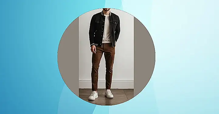 So, you’re trying to nail that “gents casual outfit” vibe, huh? Well, check out this dude! He’s rocking the “I’m not trying too hard, but I still look awesome” look. It’s like he just threw on a comfy shirt, a cool brown jacket that looks straight out of a movie, and some sneakers. The white sneakers look like they have never been used and are so bright, but it works. You could totally see him chilling at the park, or even grabbing a fancy coffee with your friends.