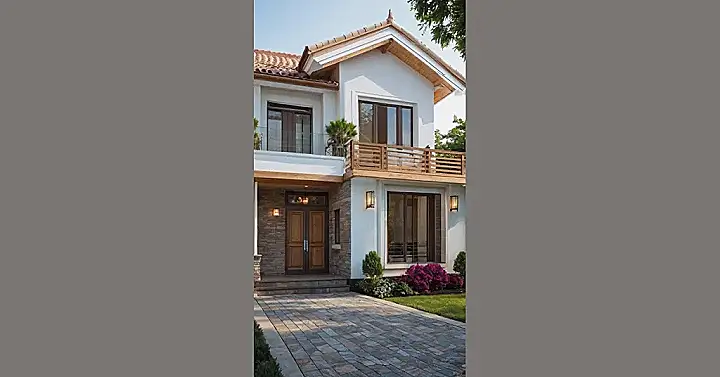 Isn’t this place awesome? It looks like the kind of house where you’d sip lemonade on the balcony while plotting how to prank your siblings (in a totally harmless way, of course!). The big windows mean you can spy on all the neighborhood gossip, and the cool stone details make it look super fancy. Plus, imagine all the parties you could throw!