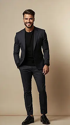 Plus, this outfit is versatile! You could wear it to a fancy dinner, a school presentation, or even just chilling with friends (if you want to be the best-dressed dude in the group, of course). The blazer and pants combo gives you that “I’ve got my act together” vibe, even if you’re secretly just trying to avoid wearing sweatpants for once. It shows that sometimes, the best fashion statements are the ones that never go out of style.
