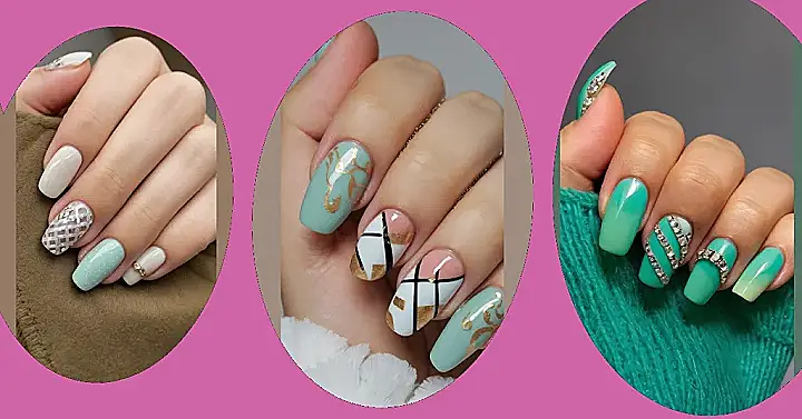 Seriously though, who knew nails could be so fancy? It’s like they’re dressed up for a mini-prom. And that patterned nail? Super cool! It’s not just a simple green, but something a bit more creative! These nails are definitely inspiring some main character energy. Time to go forth and conquer, one sparkly, minty-fresh fingertip at a time!