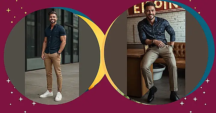 This kind of fashion is all about clothes that are easy to wear and feel comfortable but still make you look put-together. Forget anything tight or stuffy; we’re talking about cool button-downs, durable chinos like the ones in the picture, and maybe a simple pair of sneakers or boots. It’s the kind of style that says, “Yeah, I look good, and I can still run for the bus without tripping.” Plus, you can mix and match these basic pieces like crazy, so your closet basically becomes a superpower of effortless coolness.